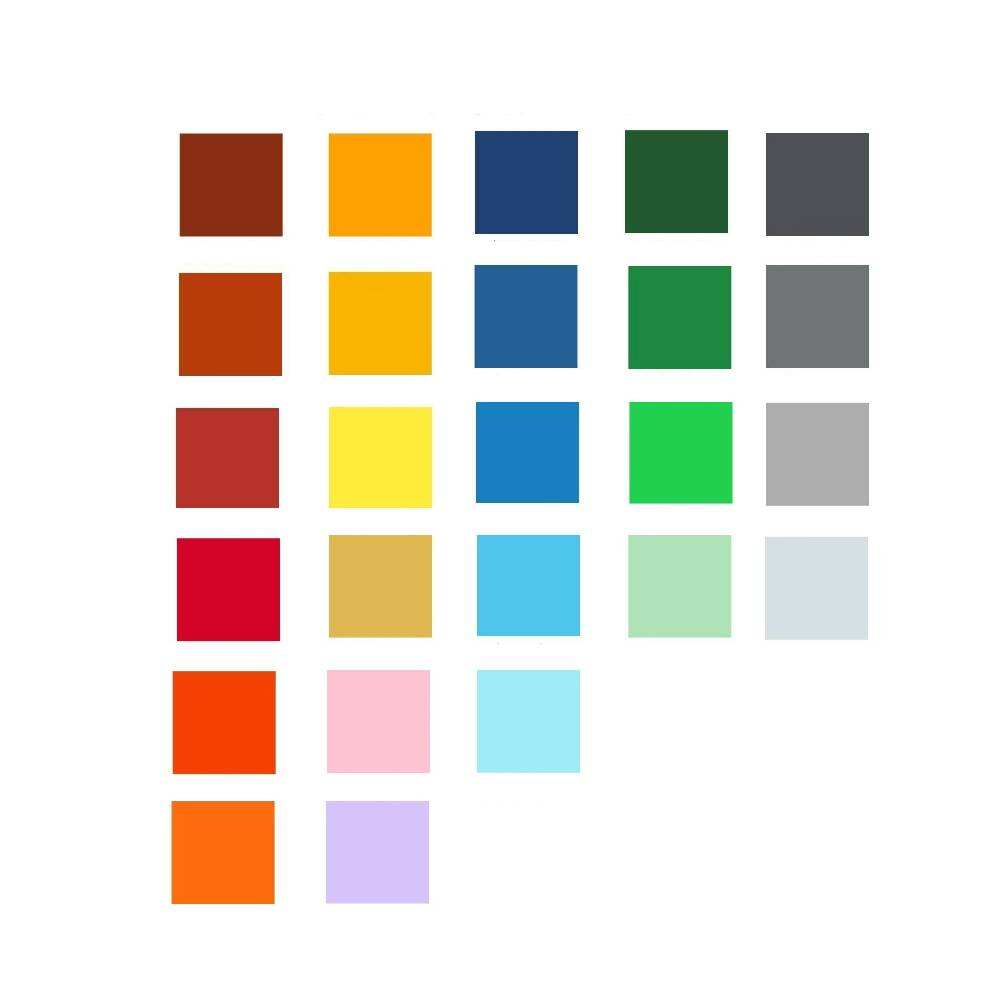 | Color | Water-based topcoat color card | Visual |